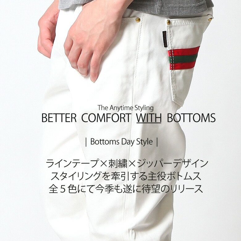 ラインテープ×刺繍×ジッパーデザインを融合した、スタイリングを牽引する主役ボトムスです!トップスが軽く、シンプルになっていくこれからの季節には欠かせない1本。